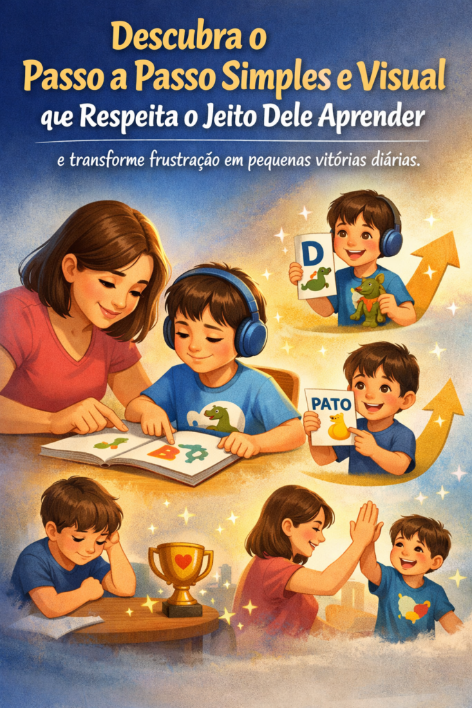 Você não tem medo da leitura. Você tem medo do futuro. Neste método, você entende como seu filho aprende — e descobre que ele não está atrasado… ele apenas aprende de forma diferente.