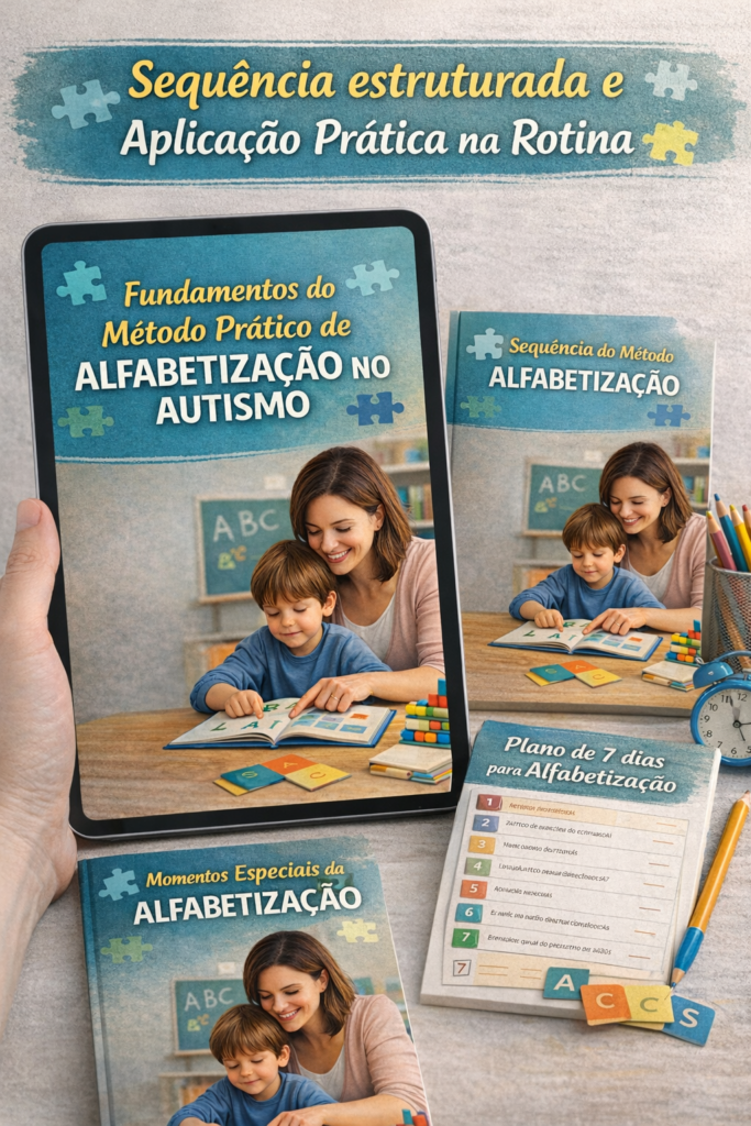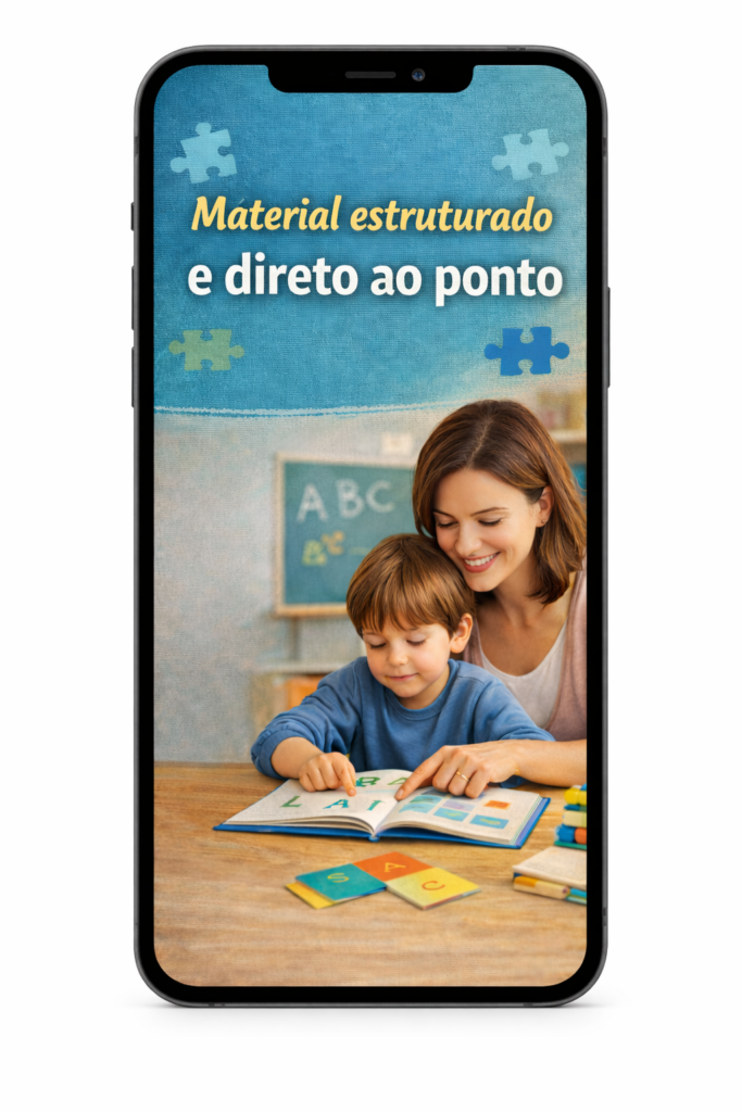 Esse método organiza a alfabetização em etapas práticas, respeitando o perfil sensorial, cognitivo e emocional da criança autista, tornando o processo possível, leve e consistente dentro de casa.