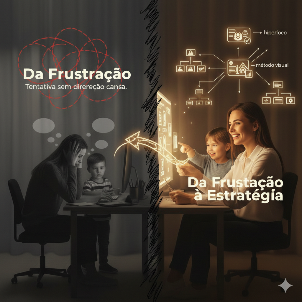 Tentativa sem direção cansa. Mas quando você aprende a usar o hiperfoco e o método visual, tudo muda. Você deixa de insistir no errado e começa a aplicar o que realmente funciona.