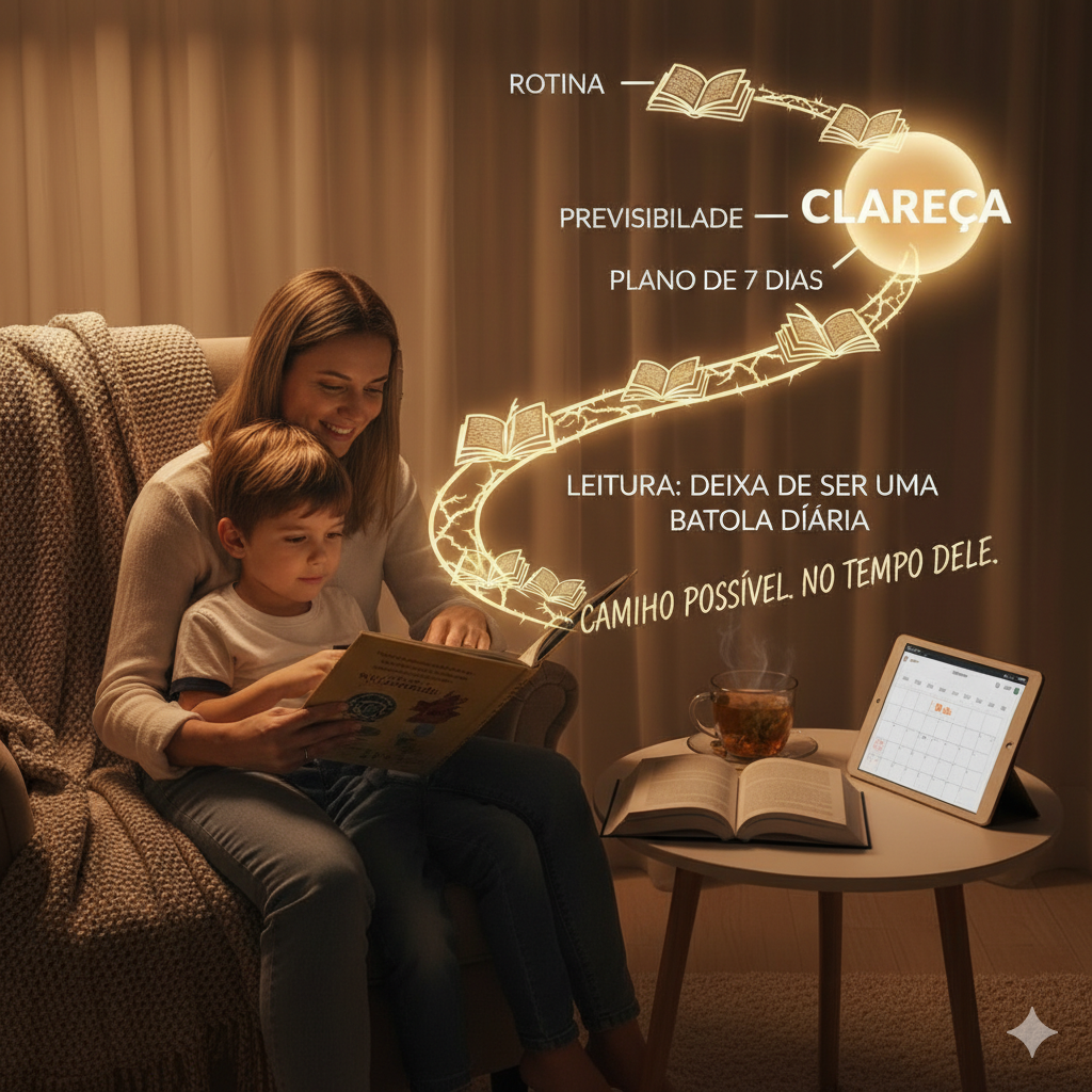Com rotina, previsibilidade e o plano de 7 dias, você ganha clareza. A leitura deixa de ser uma batalha diária e passa a ser um caminho possível, no tempo dele.